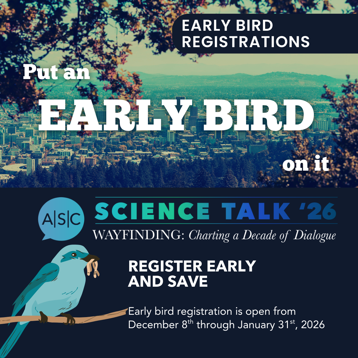 Join ASC for SCIENCE TALK ’26, March 26-27, 2026 at Tiffany Center in Portland, OR… and virtually everywhere starting March 2nd!